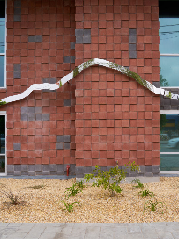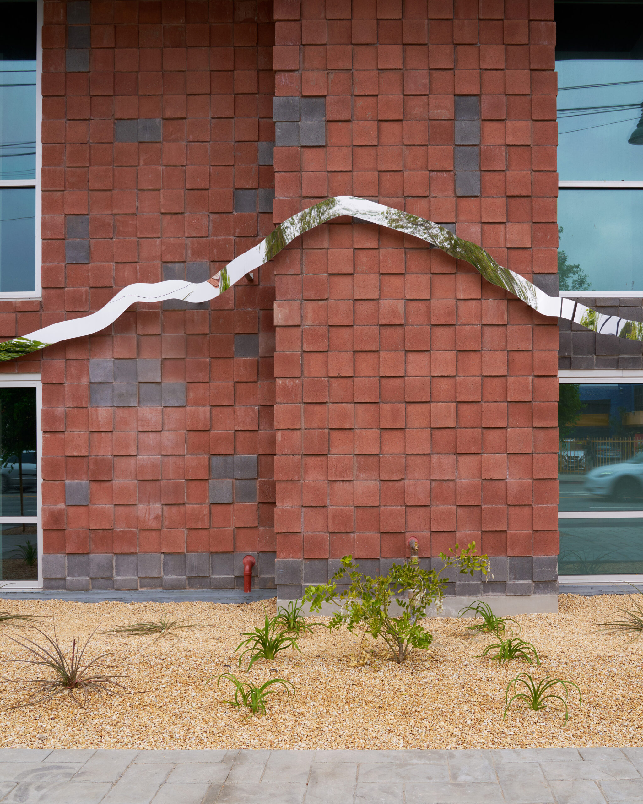 Reflected Terrain is a polished stainless steel contour line representing a portion of the San Gabriel Mountains’ topography.