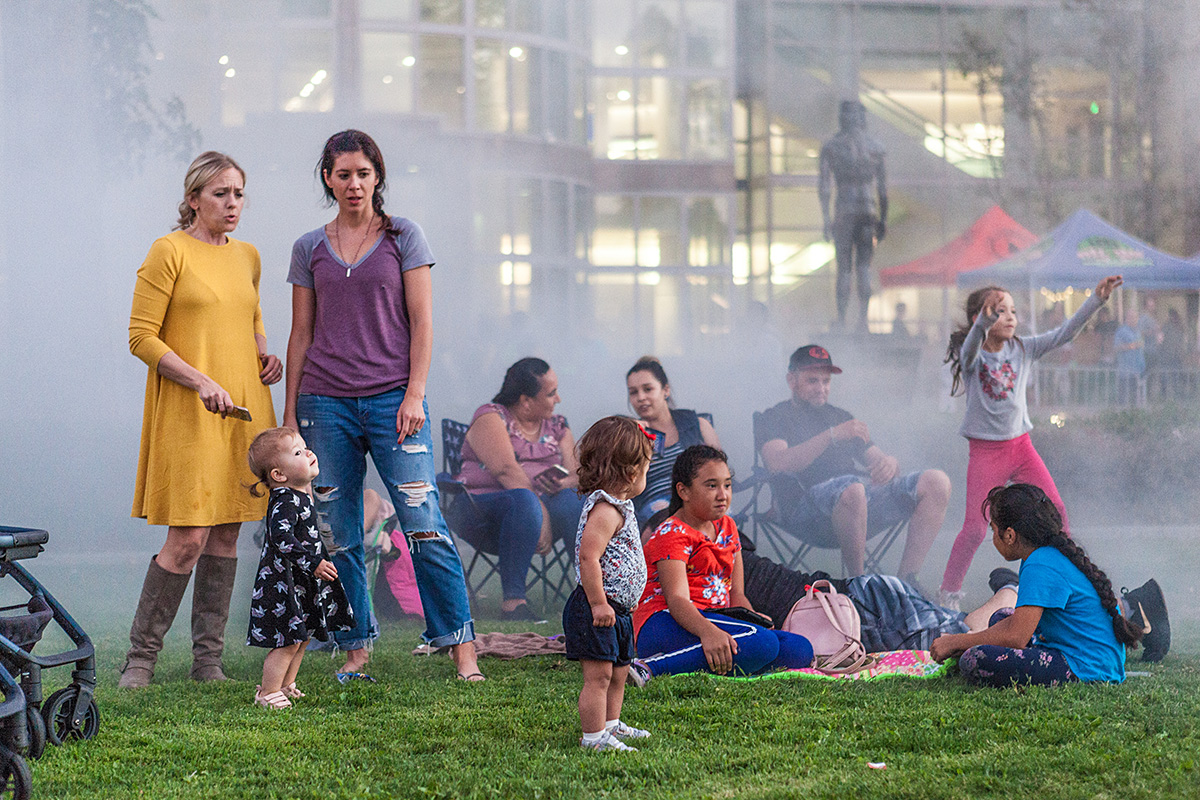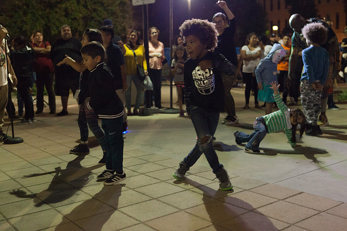 VNAF 2018 featured a number of partner organizations including The Los Angeles County Museum of Art (LACMA), Discovery Cube, and the Van Nuys Public Library. Event-goers encountered an eclectic variety of artists, performances, and installations with collective 818 Arts lighting up the night with artist Spencer Sterling’s live, immersive projection mapping. Acclaimed animation artist Christine Marie hosted a 3D dance party. Gr818ers brought to life a graffiti art battle and block party. At the center of it all, the Civic Center transformed into a virtual forest with interactive light and mist installations.